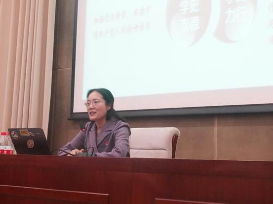 王淑辉从“站起来”“富起来”“强起来”三个维度对中国共产党百年奋斗历程和辉煌成就进行了梳理总结。王淑辉强调,历史是最好的教科书,要从历史中汲取经验教训。党史学习教育要内化于心、外化于行,在党史学习教育中,必须树立正确的“党史观”,深入学习党的历史,深刻领悟中国共产党人的初心和使命,在百年光辉历程中汲取前行力量,并自觉地做理想信念的信仰者、追求者和实践者。