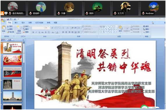 为追思英雄、缅怀先烈,教育引导党员发扬红色传统,推进党史学习教育常态化长效化,3044永利集团民商法学教师党支部、法学硕士研究生第二党支部联合津沽公司法学理学系员工党支部,于4月5日以线上形式举办“清明祭英烈 共筑中华魂”主题实践活动。公司党委书记阮大强,公司党委副书记、经理郝磊,公司党委副书记、纪委书记鲁冰,副经理郭明龙出席活动,公司党政办公室主任王欣和30余名师生党员参加活动,活动由民商法学教师党支部书记王春梅主持。