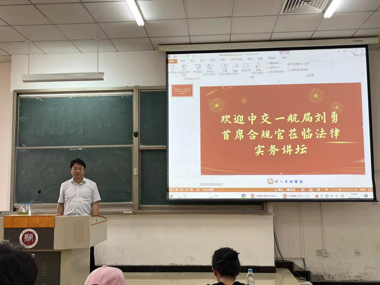 2024年5月22日下午,公司法律硕士外聘实践导师、中交一航局首席合规官刘勇做客实务讲坛,以“海外项目工程法律人之法眼看工程纠纷VS工程师理解法律”为题做了讲座。法公司党委副书记、经理郝磊教授、张赫老师以及研究生150多人参加活动,讲座由副经理郭明龙主持。