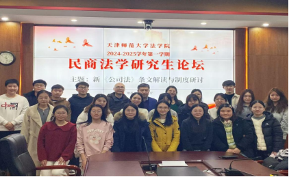 2025年1月3日上午,公司民商法学科硕士研究生学术沙龙活动在澍泽学术报告厅成功举办。本次沙龙以“新《中华人民共和国公司法》条文解读与制度研讨”为主题,旨在增强同学们对《中华人民共和国公司法》新增条文和相关法律制度的理解,并激发对相关制度创新的思考,锻炼和培养员工们的思考能力与创新能力。民商法教研部郝磊教授、郭明龙教授、王春梅教授、何潇老师,以及民商法专业2023级、2024级全体学术型硕士研究生和部分法律硕士研究生参加了本次学术沙龙。