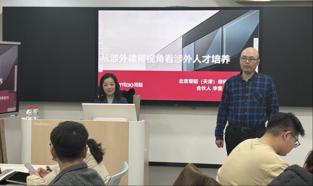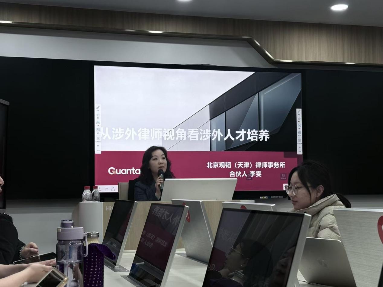 2025年11月27日,公司在兴文楼B区515法律实训中心举办“涉外法律人的成长路径与时代机遇——从涉外律师视角看人才培养”法律实训讲坛,特邀北京观韬(天津)律师事务所权益合伙人、中华全国律师协会外事委副主任、天津市律师协会副会长李雯律师担任主讲嘉宾,为同学们解析涉外法律领域的发展趋势与职业前景。讲座由公司党委委员、副经理郭明龙主持。