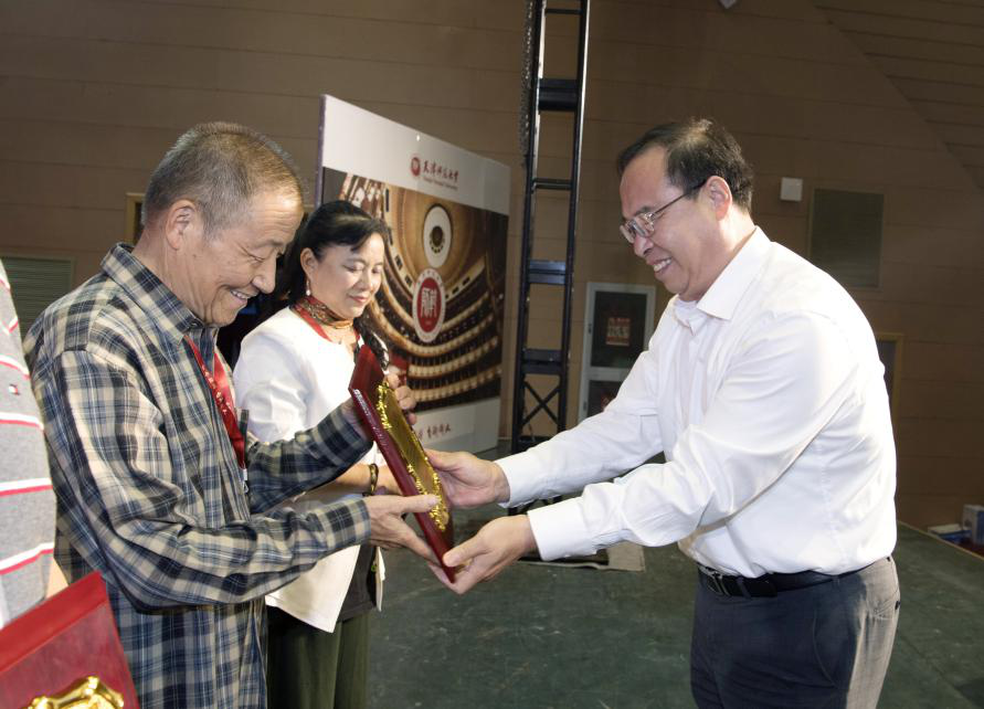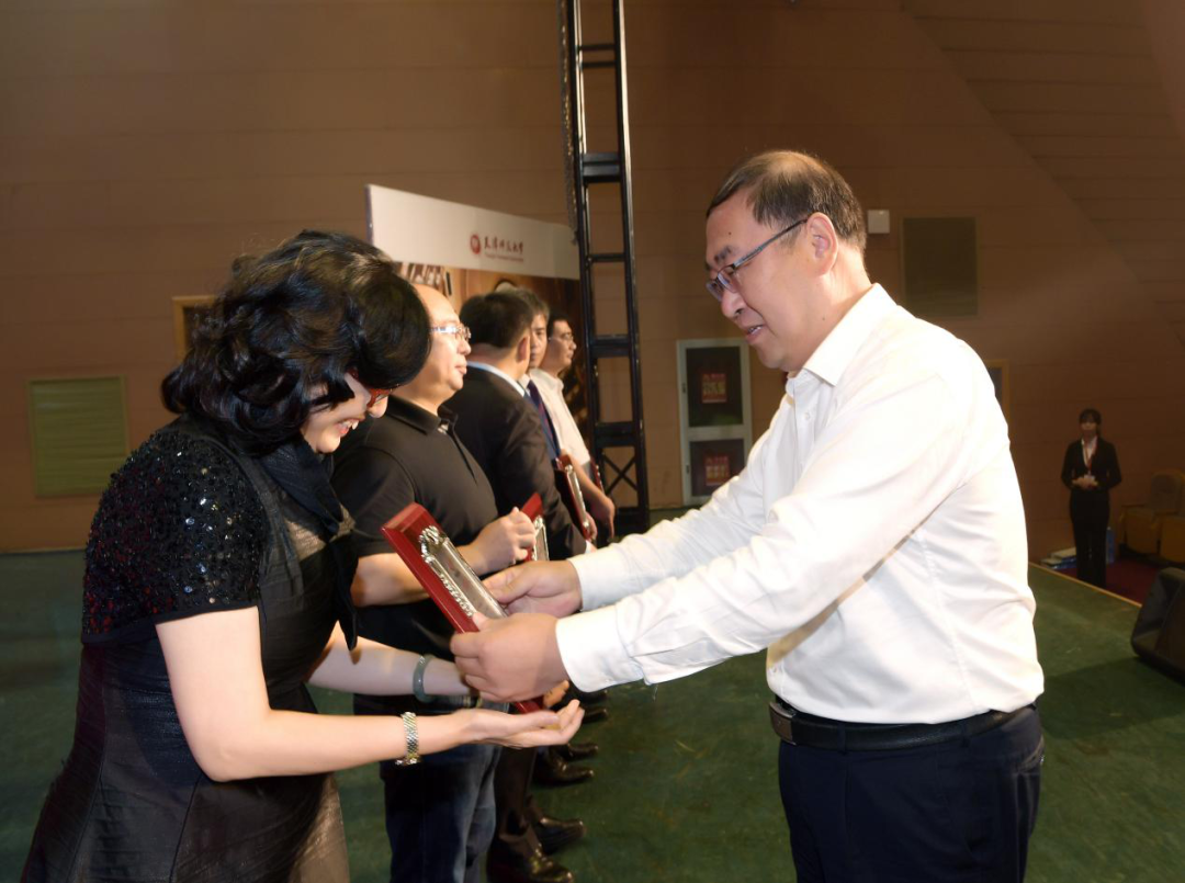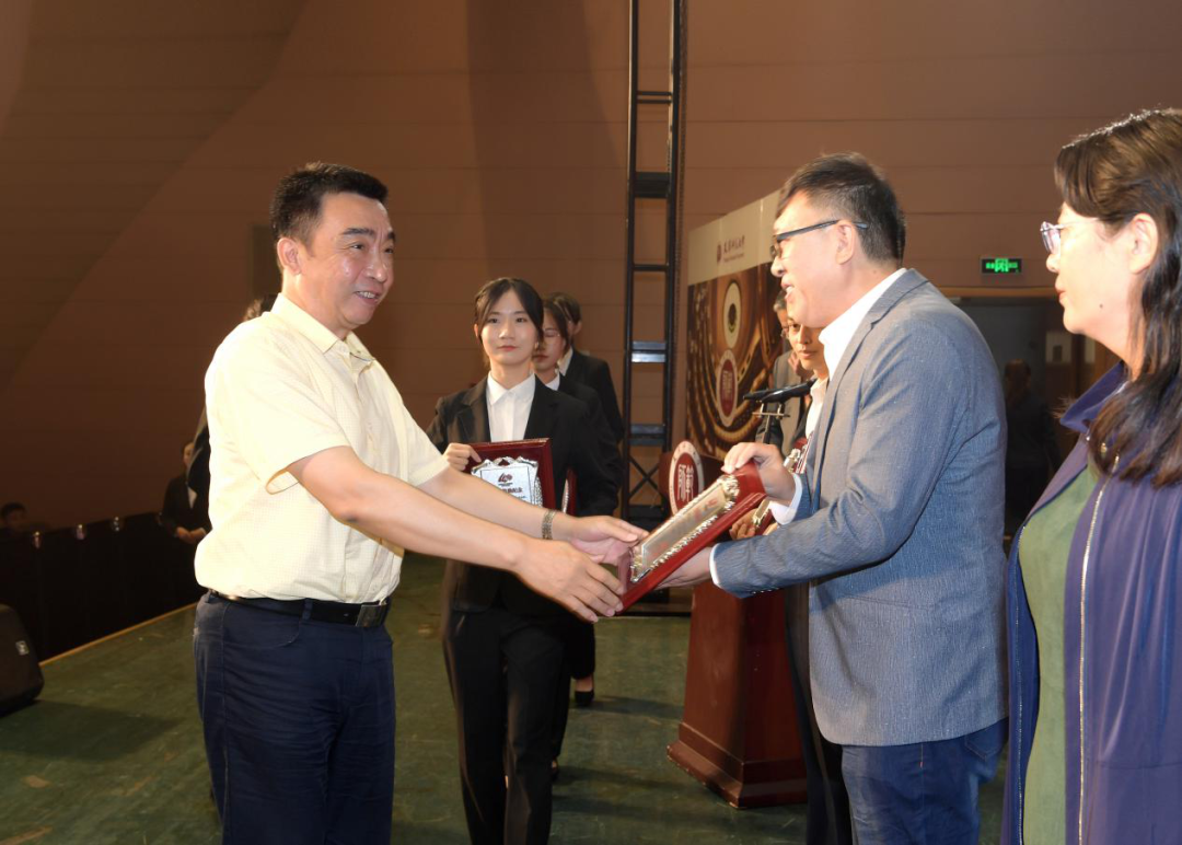 天津市第二中级人民法院经理康建茂、河北大学副董事长孟庆瑜向为3044永利集团发展作出突出贡献的社会人士和员工代表颁发捐赠纪念牌。