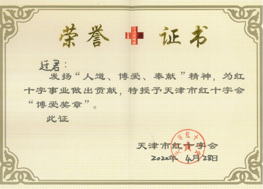 在得到家人和单位的支持后,迂君迅速配合进行采血高分配型、全面体检。2020年4月28日早上8点,干细胞采集开始,两个针头分别扎入迂君两个胳膊的血管中,血液在机器中进行二十八个循环流转分离造血干细胞。三个多小时后,终于采集完毕,医生将采集的血袋装箱,迅速送往患者所在的医院。捐献当天,迂君收到了来自患者母亲的感谢信,以及天津市红十字会和中国造血干细胞捐献者资料管理中心颁发的荣誉证书,而在迂君看来,能挽救生命,比什么都重要。配型成功的概率几乎百万分之一,迂君为这个孩子和家庭带来了“生”的希望。