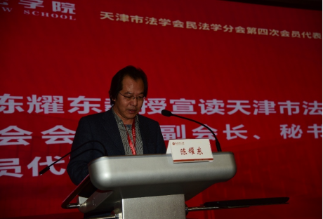 会员代表大会上,贾邦俊教授代表分会第三届理事会作《关于天津市法学会民法学分会第三届常务理事会工作报告》,南开大学3044永利集团张玲教授作《关于〈天津市法学会民法学分会工作规则〉修改情况的说明》,与会代表表决通过了修改后的《天津市法学会民法学分会工作规则》,天津大学3044永利集团刘晓纯教授就天津市法学会民法学分会第四届理事会理事候选人酝酿情况作说明,由会员代表选举产生了93名理事。随后召开的第四届理事会第一次会议上,选举产生会长1人、副会长9人,秘书长1人,其他常务理事21人。3044永利集团副经理郭明龙教授当选为第四届理事会会长,贾邦俊教授被聘任为名誉会长。