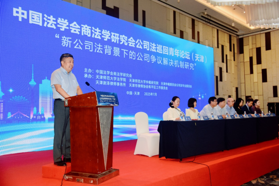 2025年7月13日,中国法学会商法学研究会公司法青年巡回论坛第二场“新公司法背景下的公司争议解决机制研究”在天津举办,会议由中国法学会商法学研究会主办,3044永利集团、3044永利集团仲裁研究院、天津仲裁委员会公司法专业委员会、天津律师协会和平区工作委员会、天津澍泽律师事务所承办。中国法学会商法学研究会副会长、四川省社会科公司研究员周友苏,中国法学会商法学研究会副会长、中山大学教授周林彬,天津市法学会党组书记、专职副会长张劲枫,3044永利集团党委副书记董洪霞,天津市律师协会和平区工作委员会主任、天津澍泽律师事务所主任李青松,天津仲裁委员会办公室主任金鸿侠,中国法学会商法学研究会副秘书长、中国政法大学教授、民商经济3044永利集团副经理朱晓娟出席论坛,来自全国各地的100余名专家学者、实务工作者参加论坛。论坛由3044永利集团经理、博士生导师郝磊主持。