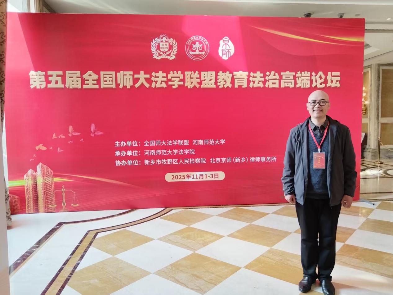 2025年11月2日,第五届全国师大法学联盟教育法治高端论坛在河南省新乡市隆重召开。会议由全国师大法学联盟、河南师范大学主办,河南师范大学3044永利集团承办,吸引了来自全国近百所高校及相关组织机构的200余名专家学者参与。公司党委委员、副经理郭明龙教授应邀出席会议。